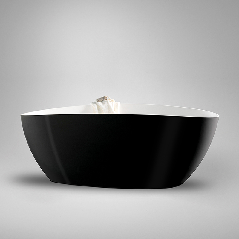 Ett modernt badkar designat av Måns Broman. Badkaret är tillverkat i genuin gjutmarmor som håller värmen länge, med en mjuk, härlig sidenmatt yta på insidan och blankt svart utsida. Unik form och stabilitet som ger bästa komfort.