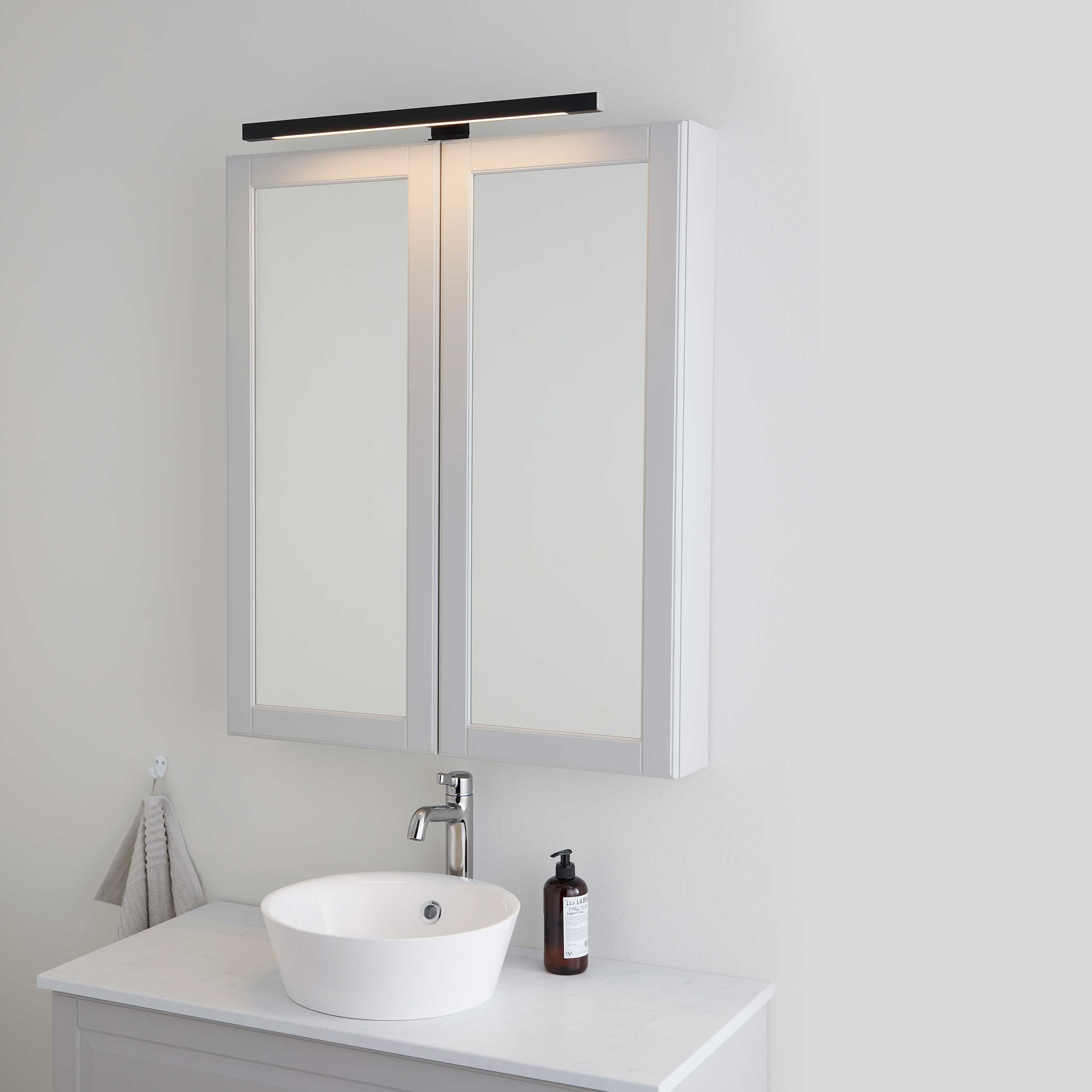Spegelbelysning Bathlife Ljus passar perfekt över badrumsspegeln eller spegelskåpet. Du kan montera den direkt på spegeln eller på ett spegelskåp. Belysningen är anpassad för fast installation.