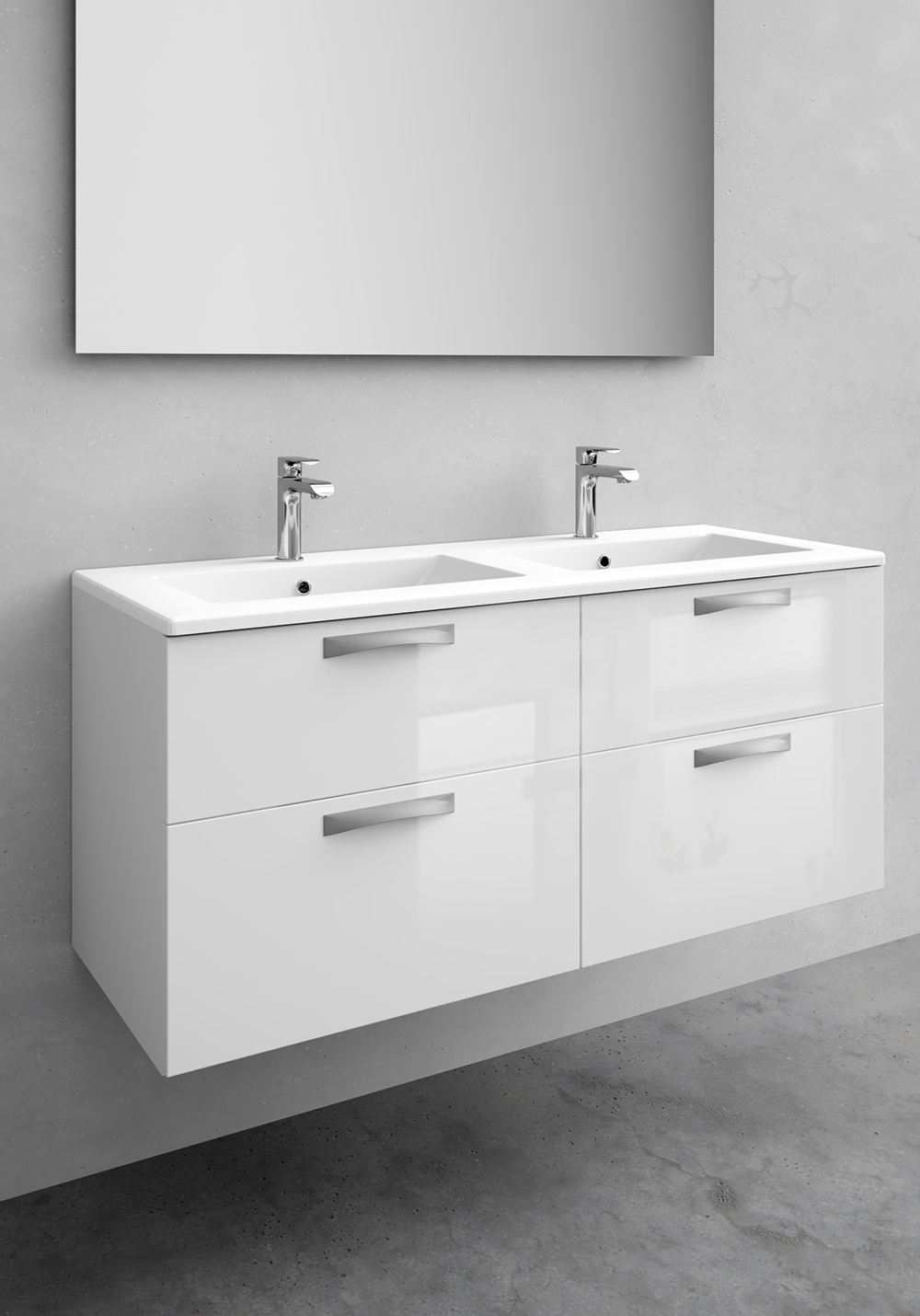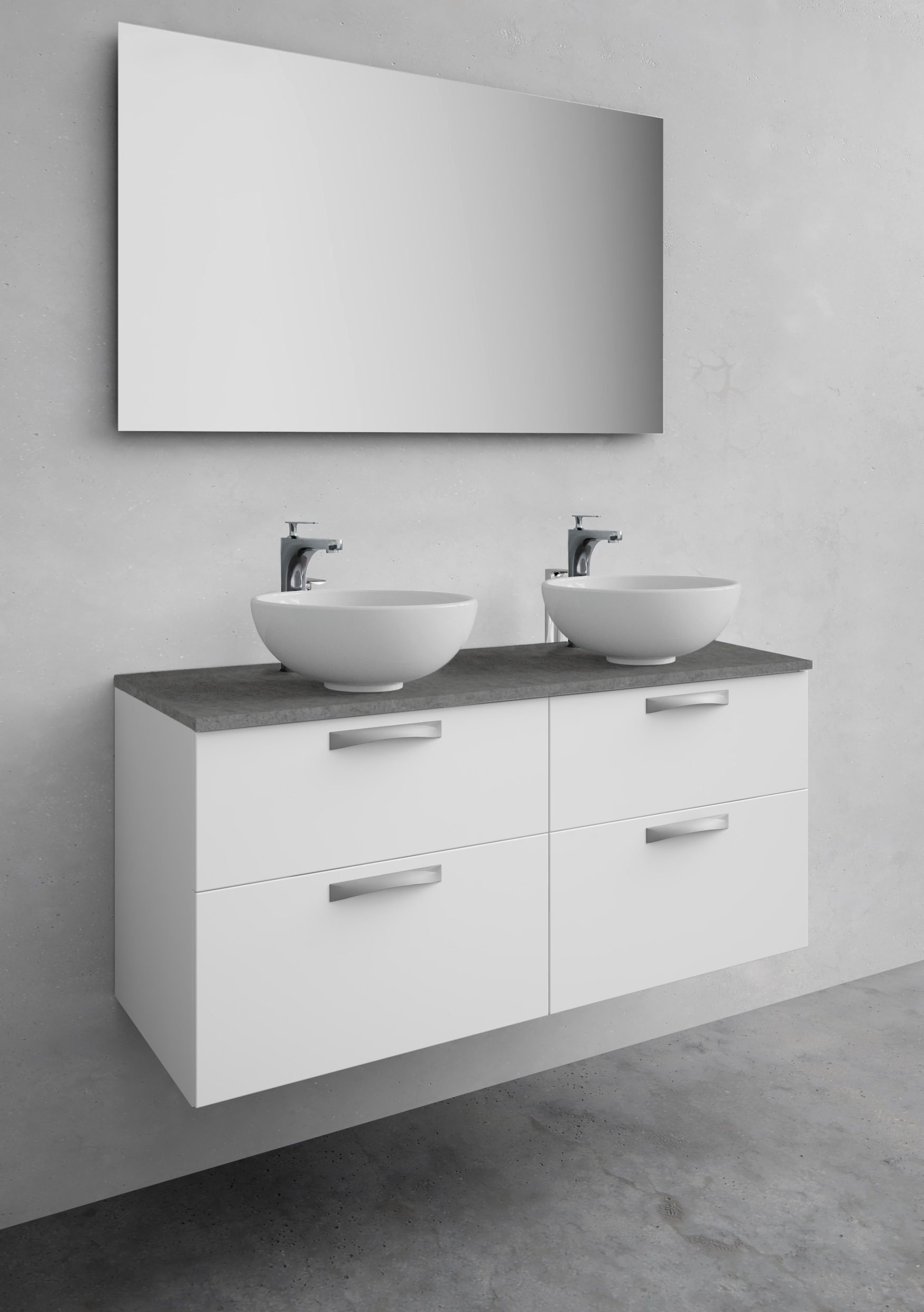En badrumsmöbel som håller en enhetlig och funktionell design rakt genom. City har ett stort urval av bredder, färger och detaljer som enkelt kan anpassas för just ditt badrum. Välj mellan tre nedsänkta tvättställ i porslin eller betong. Om du hellre vill prägla din möbel med en vacker bänkskiva och fristående handfat, finns den möjligheten också. City tvättställsskåp har mjukstängande lådor med fullutdrag. Justerbara upphängningsbeslag för enkel installation och justering. Lådinredning och uttagbar lådmatta ingår. Levereras monterad. Köp till handtag. Borrmarkeringar handtag: CC 64, 128, 160, 256, 320.