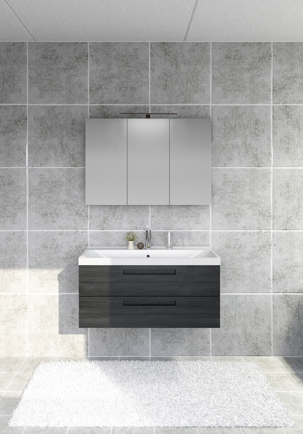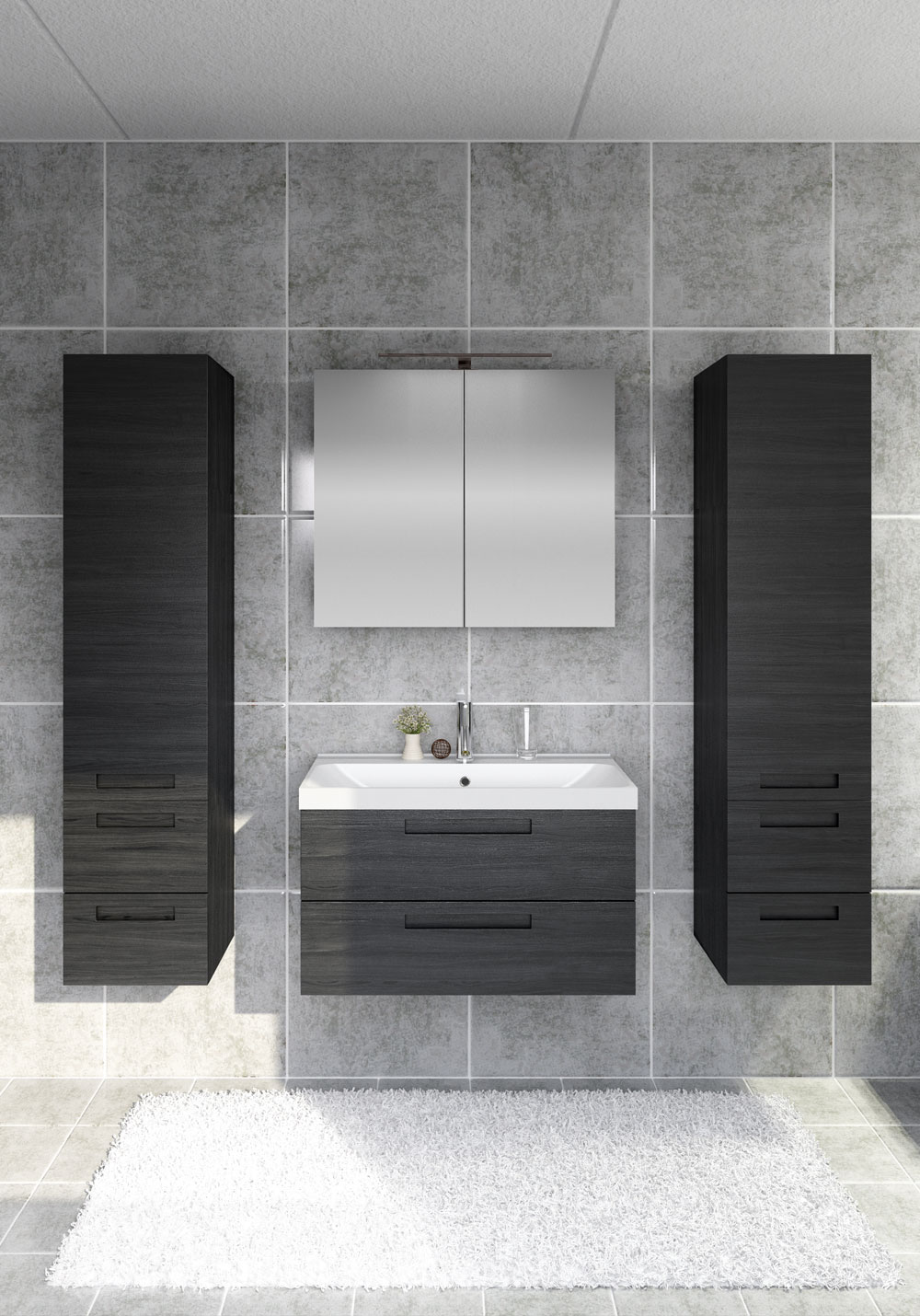 Badrumsskåp Noro Relounge Med Tvättställ 1000 Svart Fanér