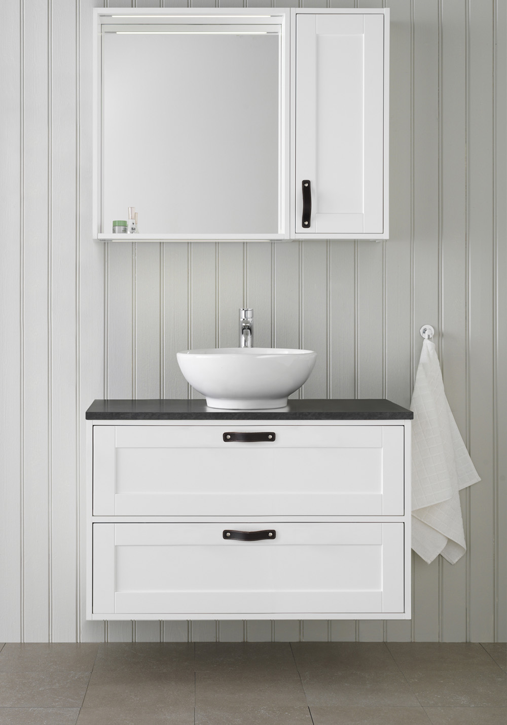 Badrumsskåp Hafa Eden 900 Med Bänkskiva Mörkgrå Stenmönstrad