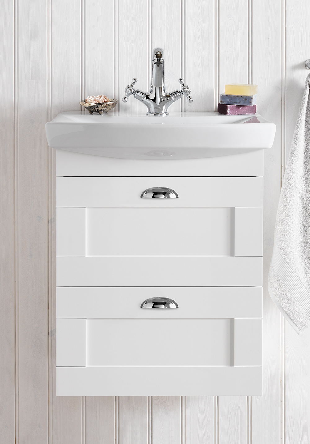 - Inklusive tvättställ i porslin med överfyllnadsskydd