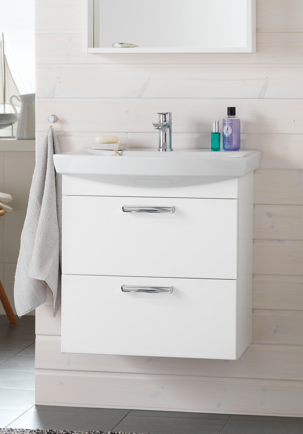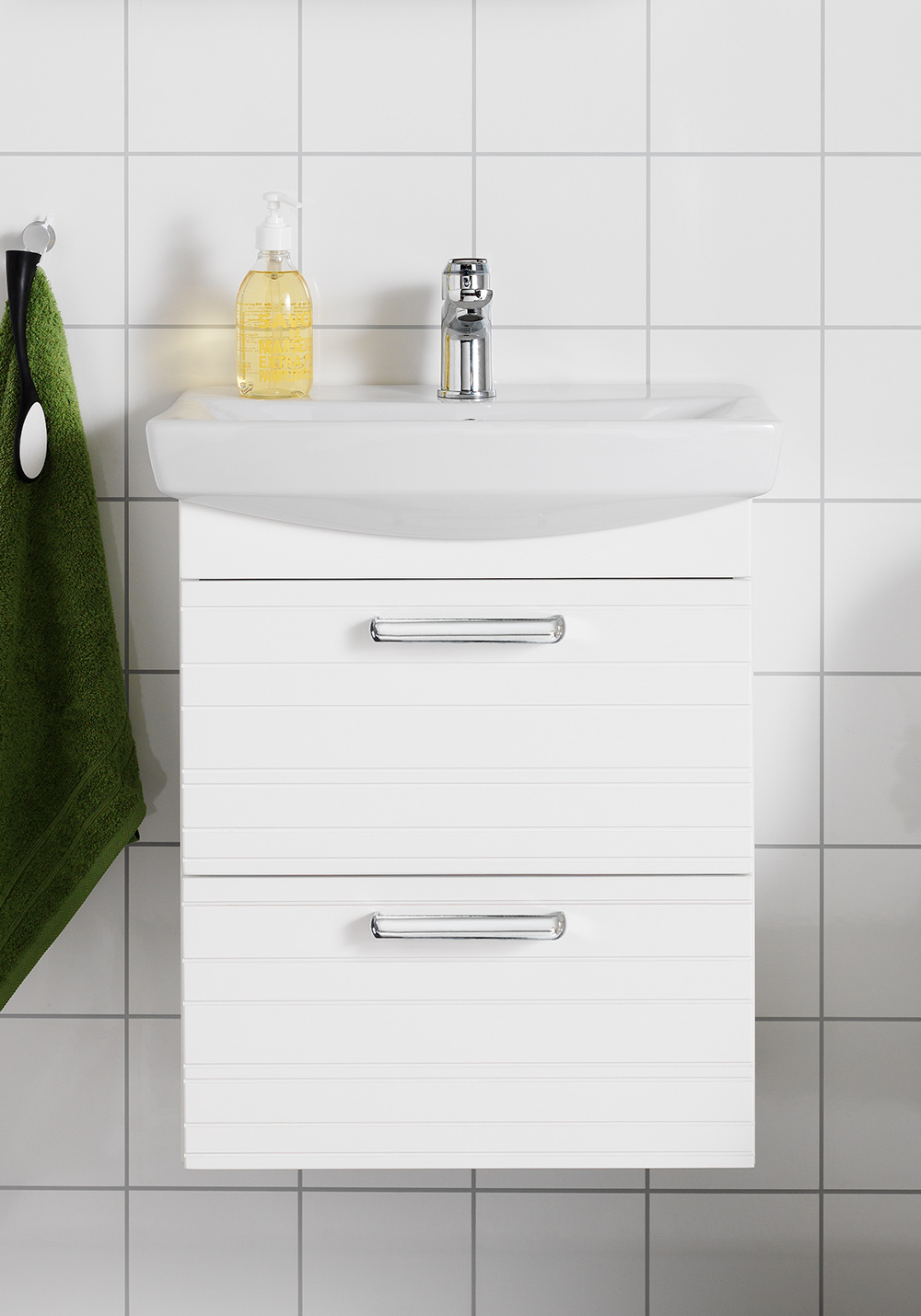 - Inklusive tvättställ i porslin med överfyllnadsskydd