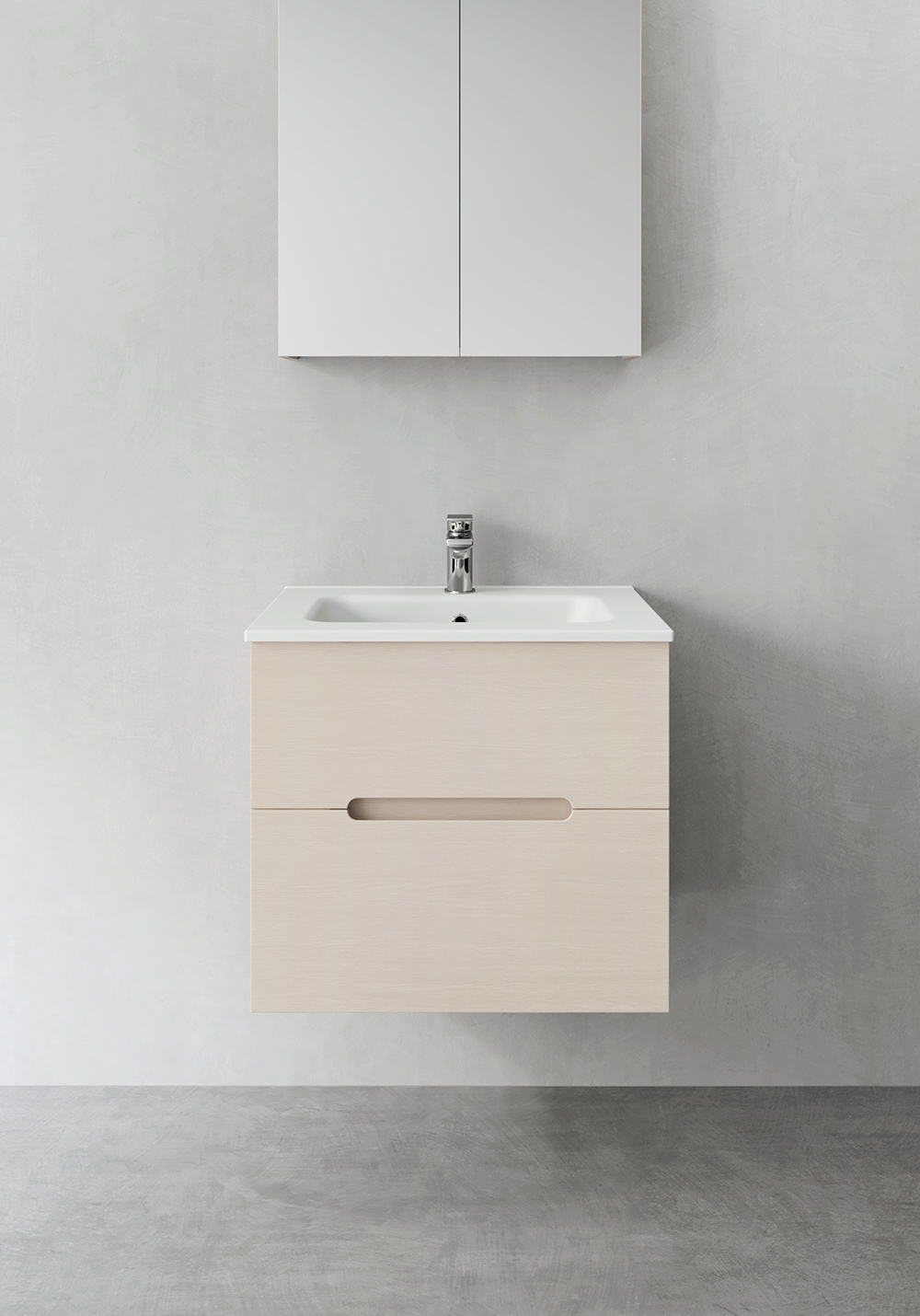 Badrumsskåp Hafa Sun Compact Ask 600 Mm Med Rektangulärt Tvättstäl