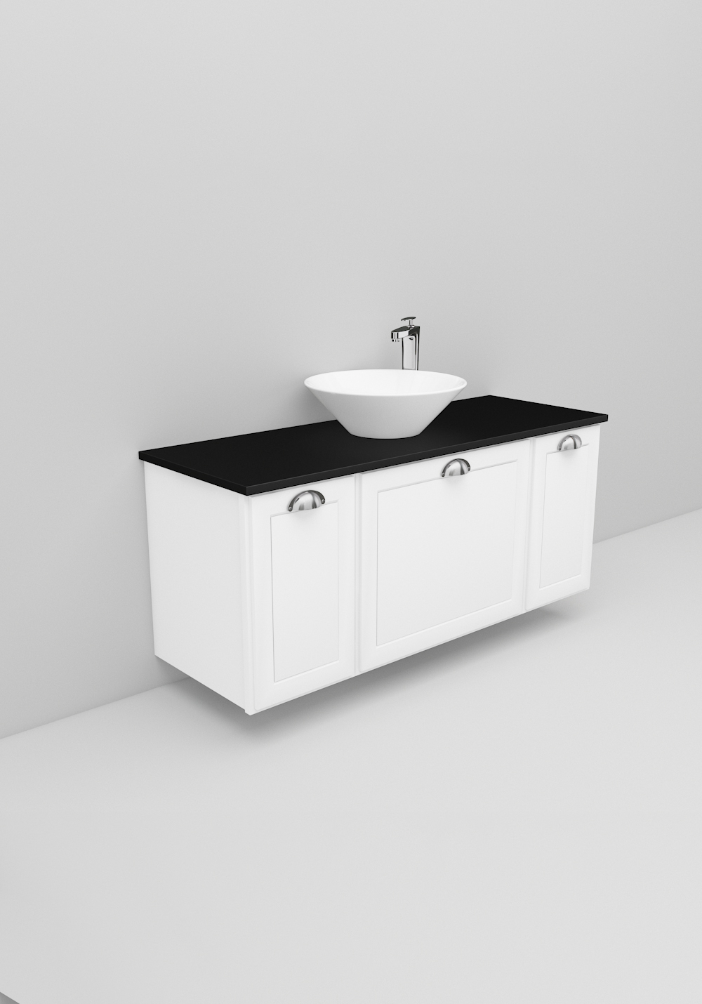 Flexline är badrumsmöbler med tidlös design och många valmöjligheter. Möblerna finns i varianter med både luckor och lådor med Soft Close-funktion, i bredder 600, 900 och 1200 mm och med flera olika utföranden på fronterna som sätter prägel på din möbel. Lyxigt fristående handfat på bänkskiva i Solid Surface marmor eller svart bänkskiva ingår. Köp till handtag, blandare, bottenventil och vattenlås.
