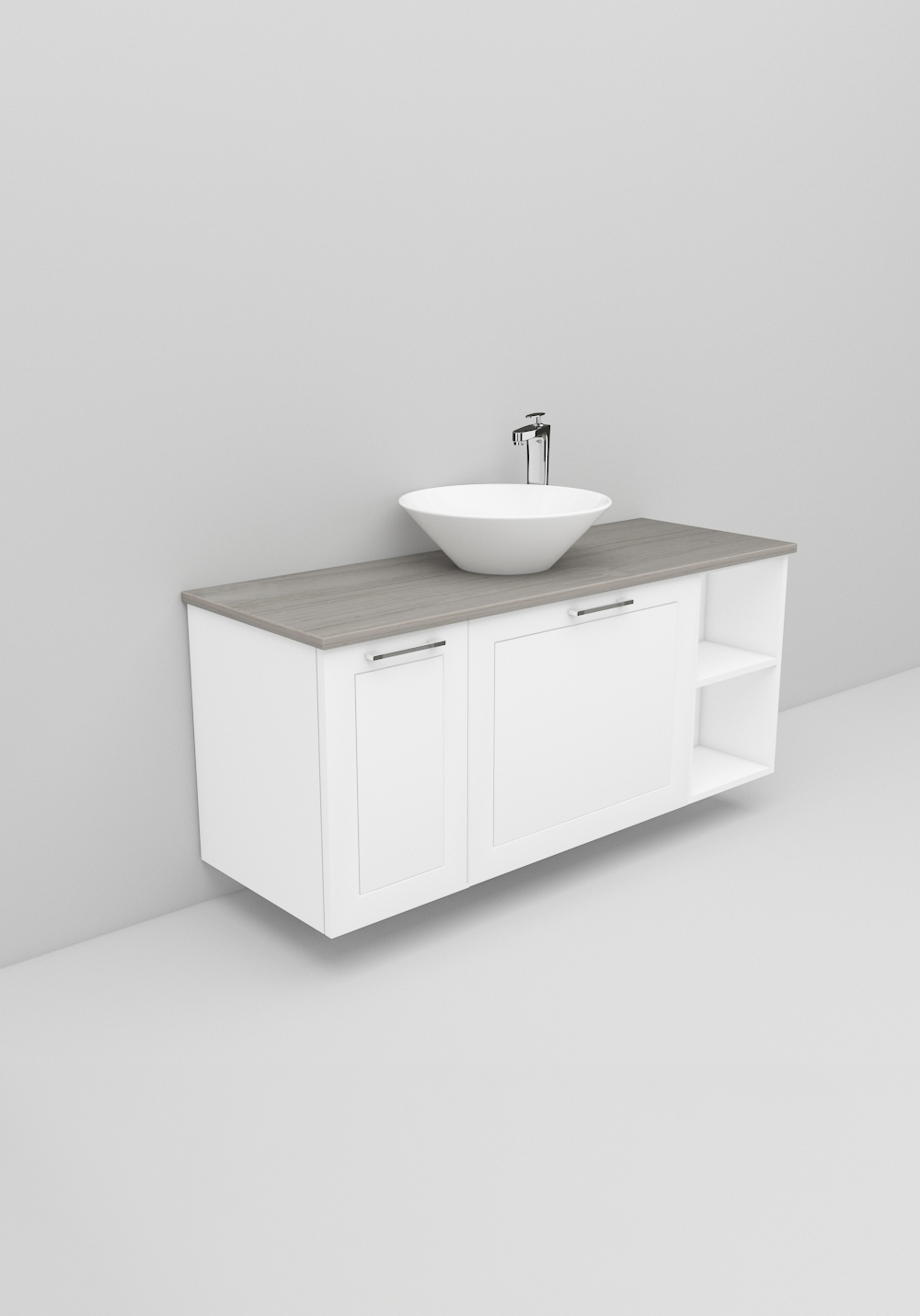 - Fristående handfat och bänkskiva ingår