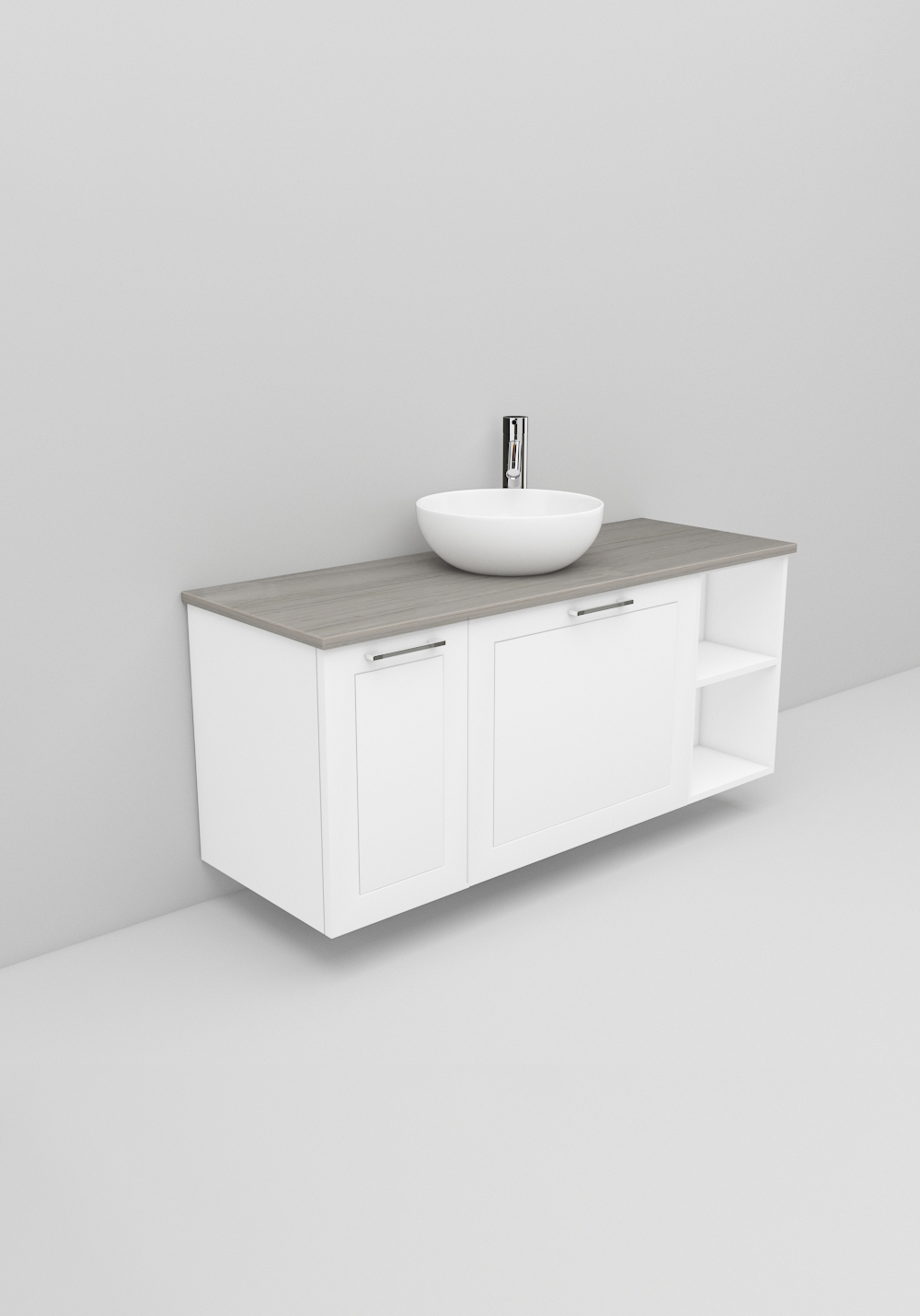 Flexline är badrumsmöbler med tidlös design och många valmöjligheter. Möblerna finns i varianter med både luckor och lådor med Soft Close-funktion, i bredder 600, 900 och 1200 mm och med flera olika utföranden på fronterna som sätter prägel på din möbel. Lyxigt fristående handfat på bänkskiva i Solid Surface marmor eller svart bänkskiva ingår. Köp till handtag, blandare, bottenventil och vattenlås.