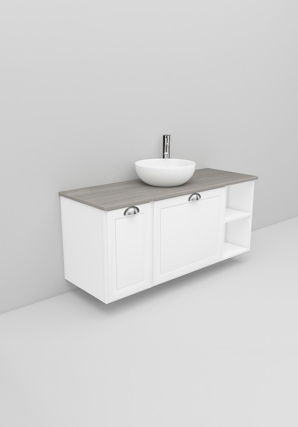 Flexline är badrumsmöbler med tidlös design och många valmöjligheter. Möblerna finns i varianter med både luckor och lådor med Soft Close-funktion, i bredder 600, 900 och 1200 mm och med flera olika utföranden på fronterna som sätter prägel på din möbel. Lyxigt fristående handfat på bänkskiva i Solid Surface marmor eller svart bänkskiva ingår. Köp till handtag, blandare, bottenventil och vattenlås.