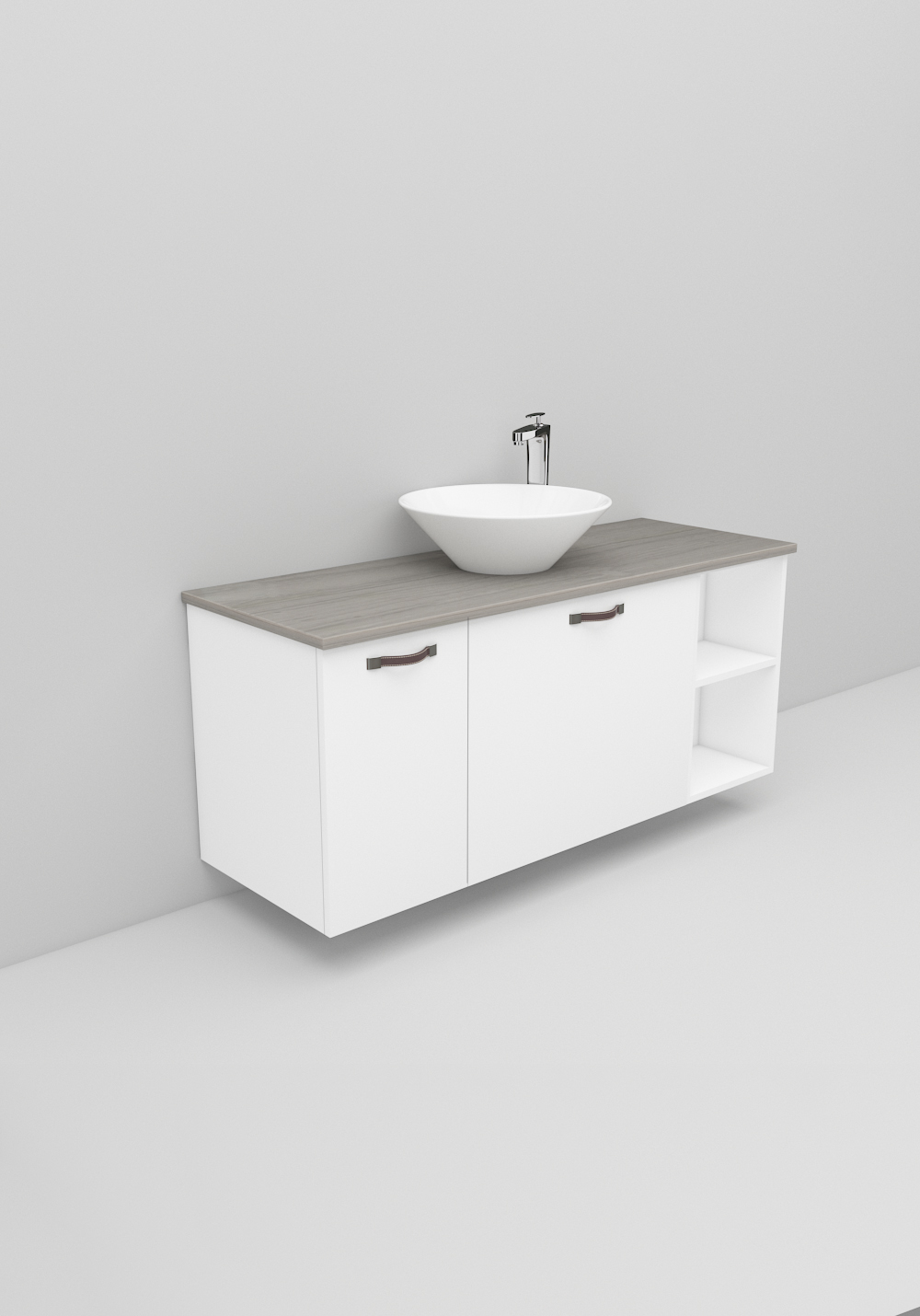 Flexline är badrumsmöbler med tidlös design och många valmöjligheter. Möblerna finns i varianter med både luckor och lådor med Soft Close-funktion, i bredder 600, 900 och 1200 mm och med flera olika utföranden på fronterna som sätter prägel på din möbel. Lyxigt fristående handfat på bänkskiva i Solid Surface marmor eller svart bänkskiva ingår. Köp till handtag, blandare, bottenventil och vattenlås.