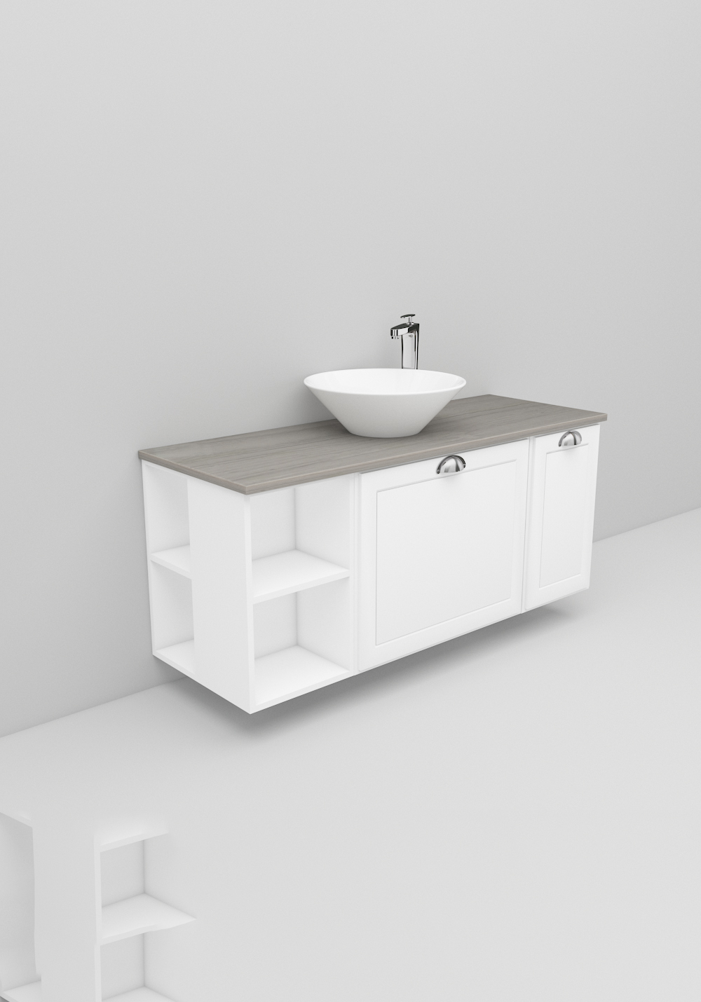 - Fristående handfat och bänkskiva ingår