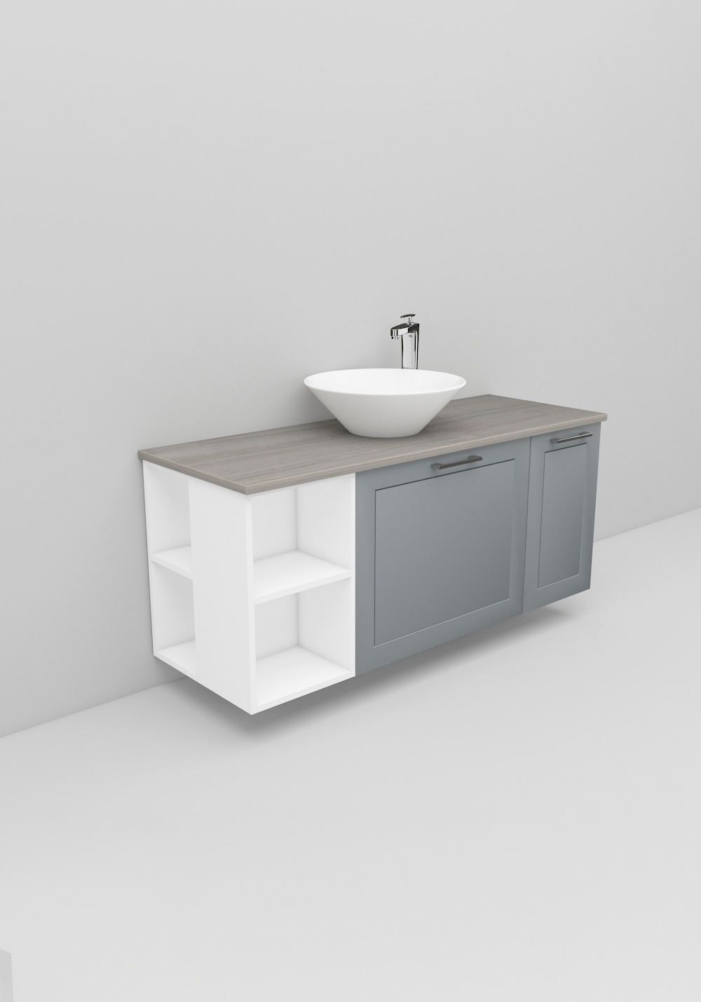 Flexline är badrumsmöbler med tidlös design och många valmöjligheter. Möblerna finns i varianter med både luckor och lådor med Soft Close-funktion, i bredder 600, 900 och 1200 mm och med flera olika utföranden på fronterna som sätter prägel på din möbel. Lyxigt fristående handfat på bänkskiva i Solid Surface marmor eller svart bänkskiva ingår. Köp till handtag, blandare, bottenventil och vattenlås.