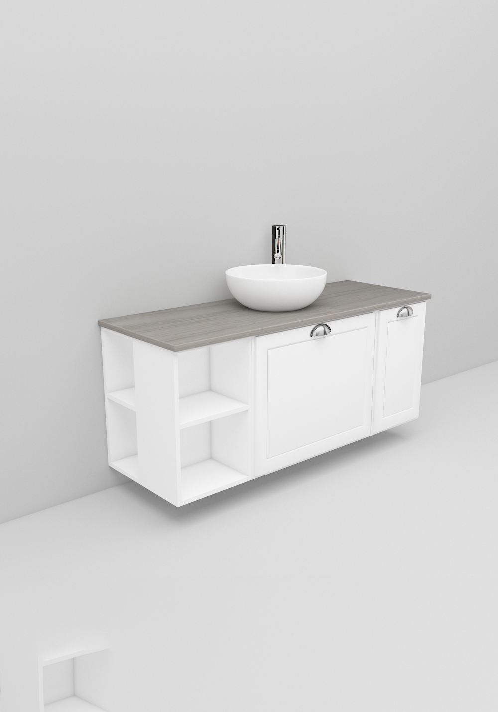 Flexline är badrumsmöbler med tidlös design och många valmöjligheter. Möblerna finns i varianter med både luckor och lådor med Soft Close-funktion, i bredder 600, 900 och 1200 mm och med flera olika utföranden på fronterna som sätter prägel på din möbel. Lyxigt fristående handfat på bänkskiva i Solid Surface marmor eller svart bänkskiva ingår. Köp till handtag, blandare, bottenventil och vattenlås.