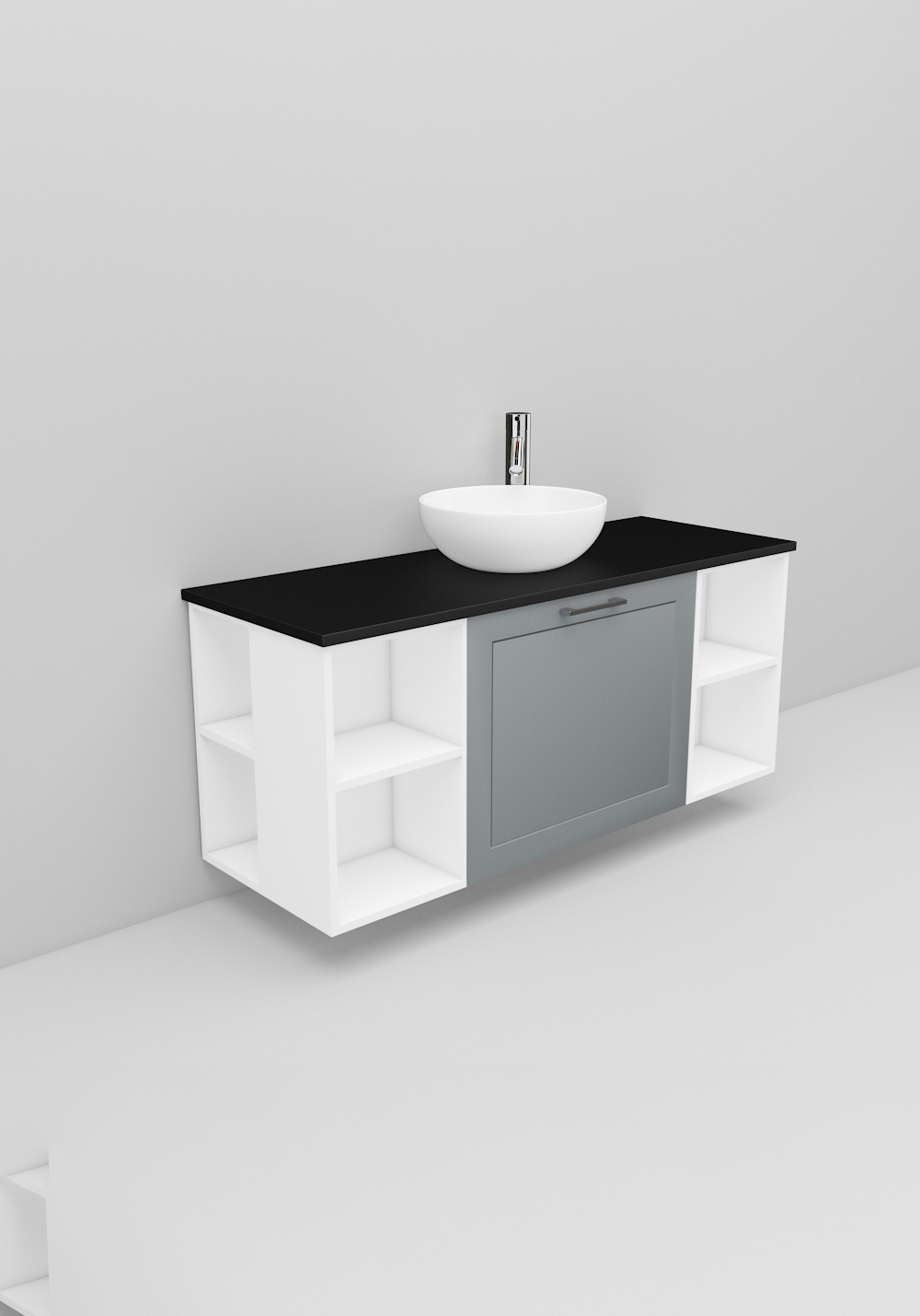 Flexline är badrumsmöbler med tidlös design och många valmöjligheter. Möblerna finns i varianter med både luckor och lådor med Soft Close-funktion, i bredder 600, 900 och 1200 mm och med flera olika utföranden på fronterna som sätter prägel på din möbel. Lyxigt fristående handfat på bänkskiva i Solid Surface marmor eller svart bänkskiva ingår. Köp till handtag, blandare, bottenventil och vattenlås.