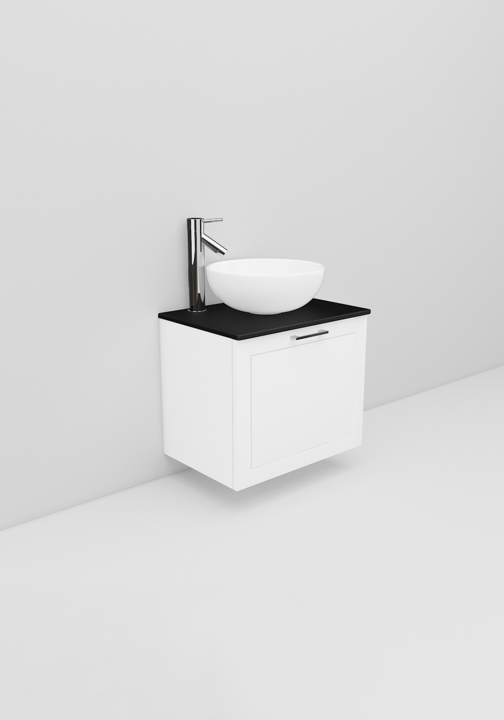 Flexline är badrumsmöbler med tidlös design och många valmöjligheter. Möblerna finns i varianter med både luckor och lådor med Soft Close-funktion, i bredder 600, 900 och 1200 mm och med flera olika utföranden på fronterna som sätter prägel på din möbel. Lyxigt fristående handfat på bänkskiva i Solid Surface marmor eller svart bänkskiva ingår. Köp till handtag, blandare, bottenventil och vattenlås.