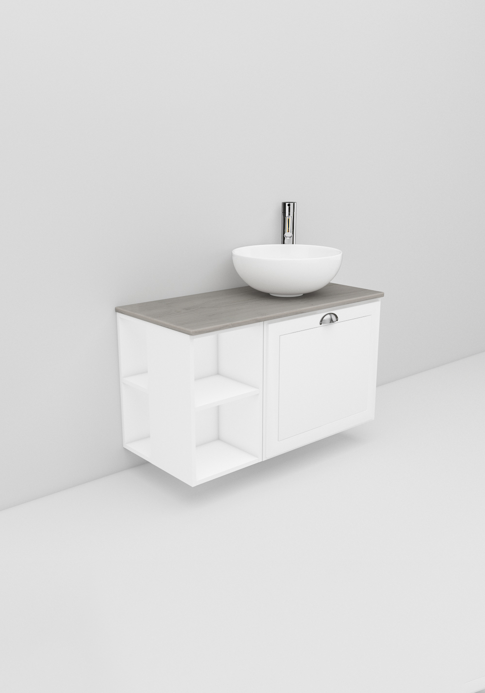 - Fristående handfat och bänkskiva ingår