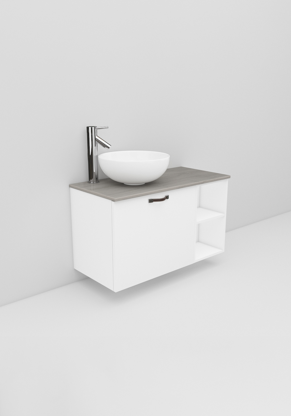 Flexline är badrumsmöbler med tidlös design och många valmöjligheter. Möblerna finns i varianter med både luckor och lådor med Soft Close-funktion, i bredder 600, 900 och 1200 mm och med flera olika utföranden på fronterna som sätter prägel på din möbel. Lyxigt fristående handfat på bänkskiva i Solid Surface marmor eller svart bänkskiva ingår. Köp till handtag, blandare, bottenventil och vattenlås.