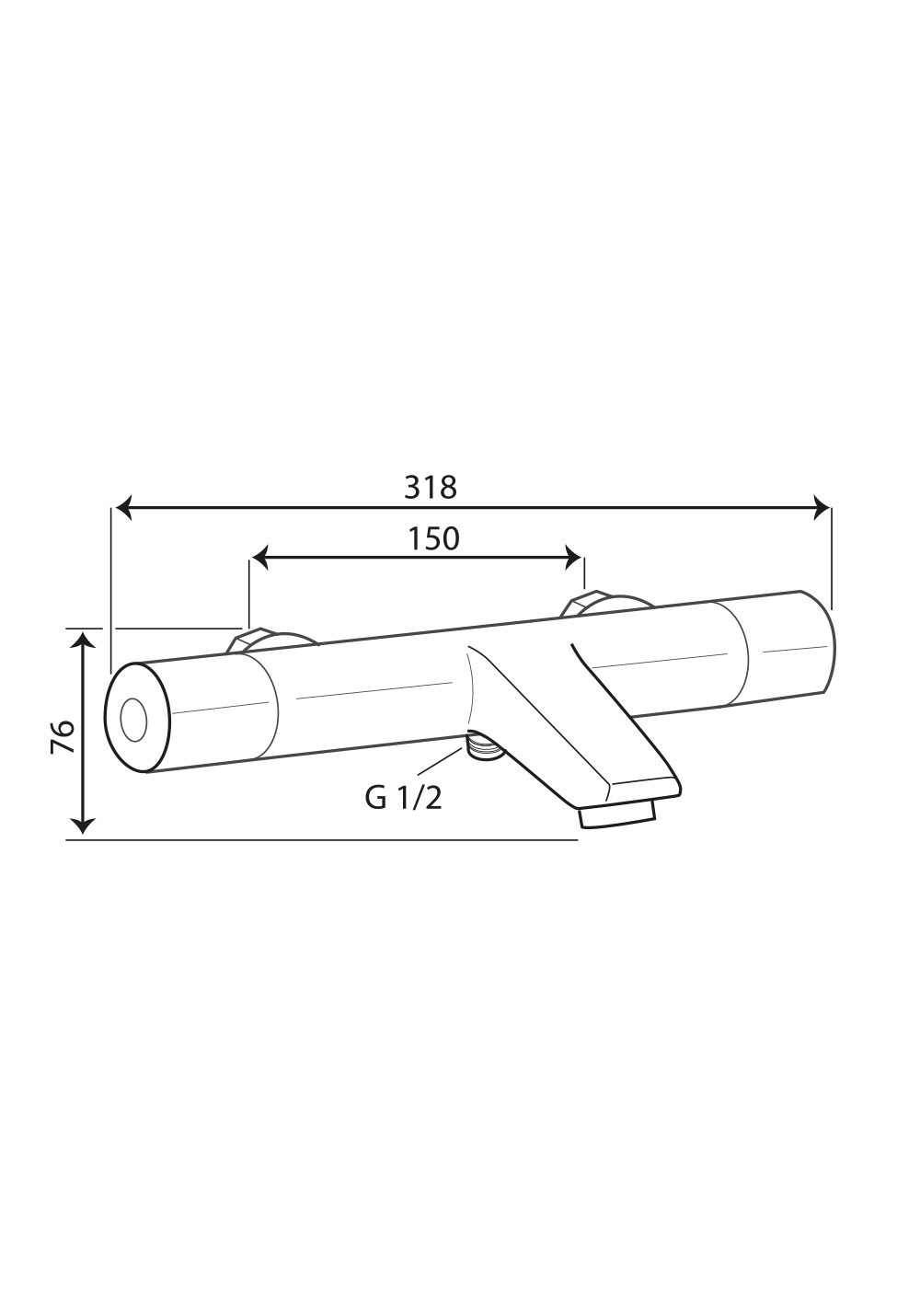 Dusch- & badkarsblandare. Genom sin unika konstruktion blir ytan aldrig varmare än 38°. Med tryckfallskompenserande termostat och skållningsskydd. cc pip-vägg 140 mm. B305xH40 mm.