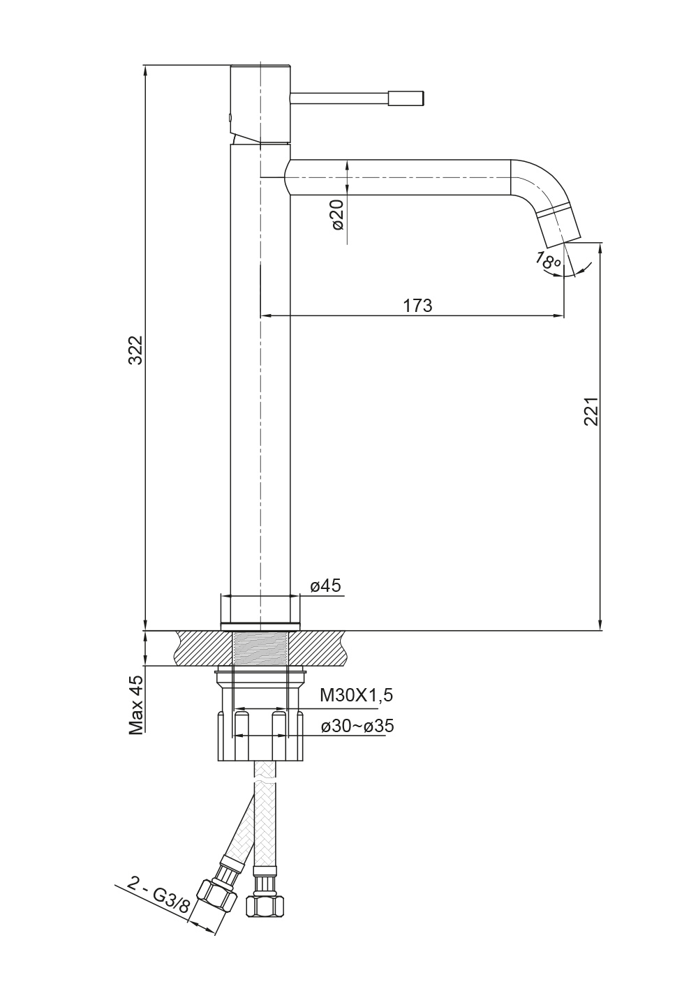 Tvättställsblandare Hafa Fine Hög Borstad Svartkrom