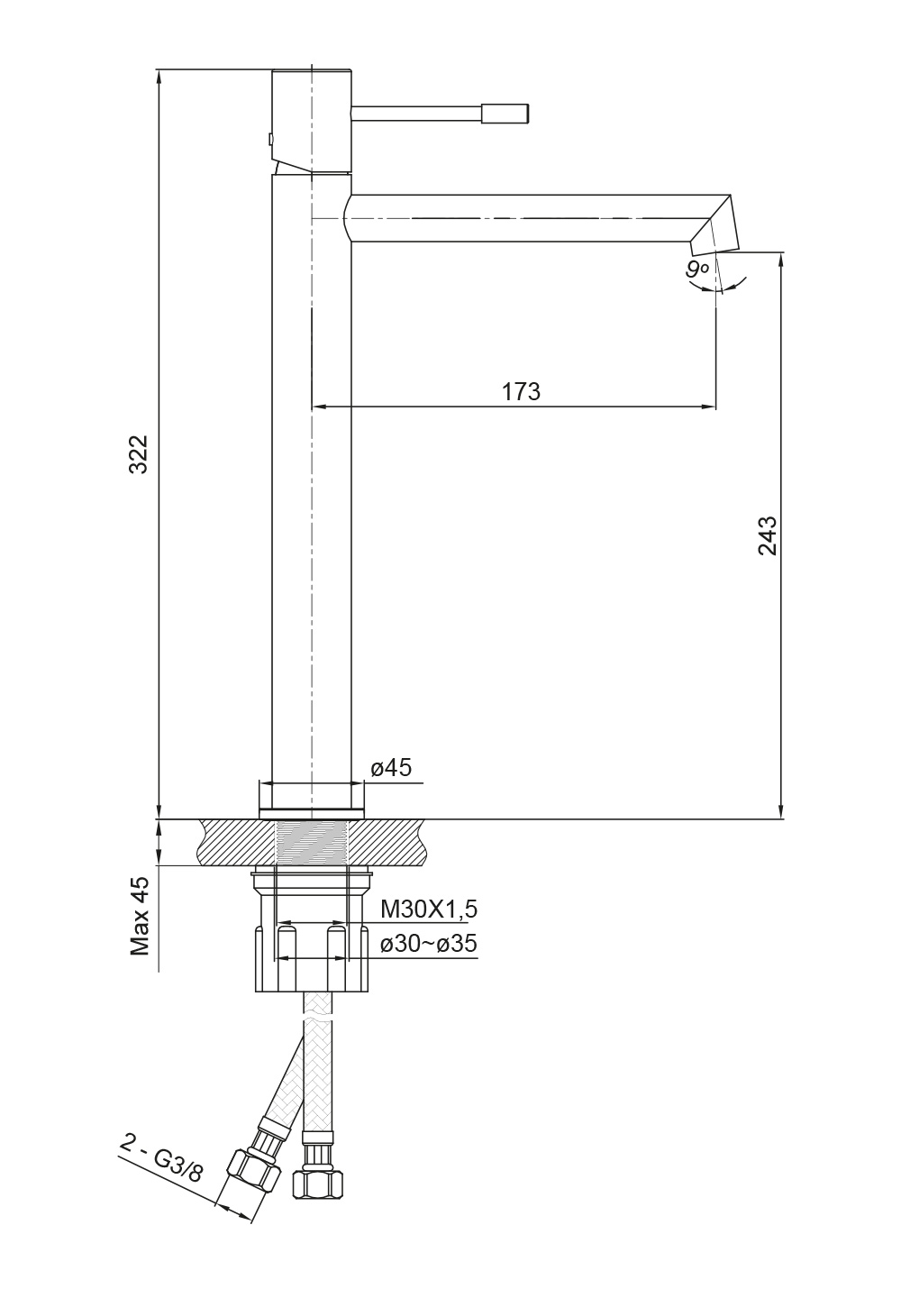Tvättställsblandare Hafa Shape Hög Krom