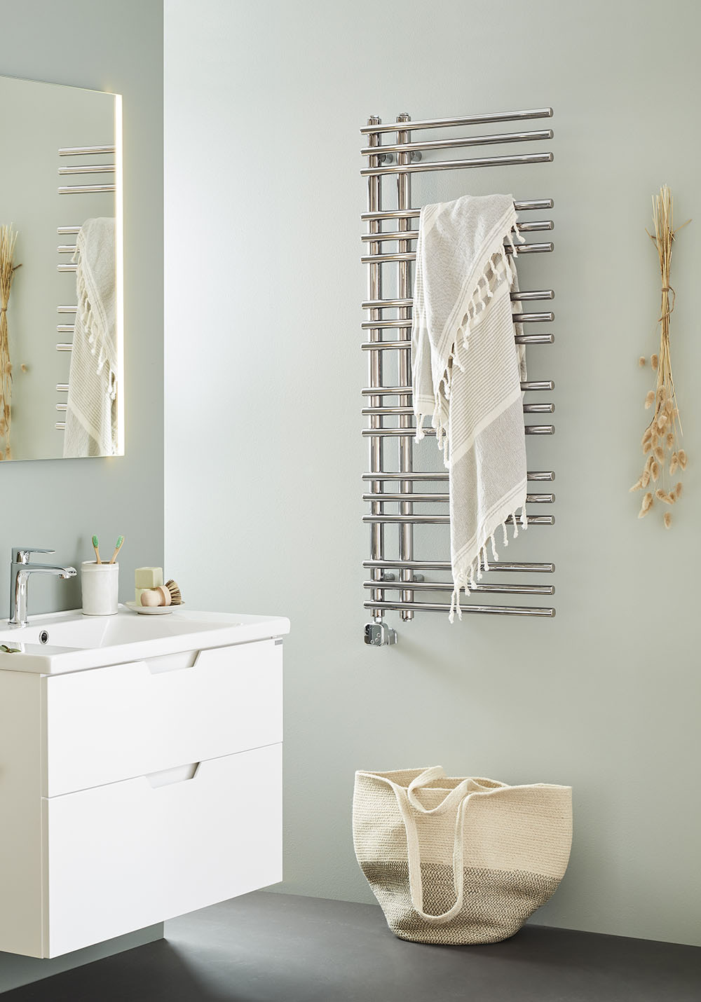 Ta regelbundet bort kalkrester med fuktig trasa. Använd inte rengöringsmedel som är etsande, syrahaltiga eller slipande eftersom det kan ge bestående skador på ytan. Kom ihåg att fylla din handdukstork med glykol om du har den i ett frostutsatt utrymme som exempel sommarbostad. Spara din värmares monteringsanvisning då du ibland vill ställa om den.