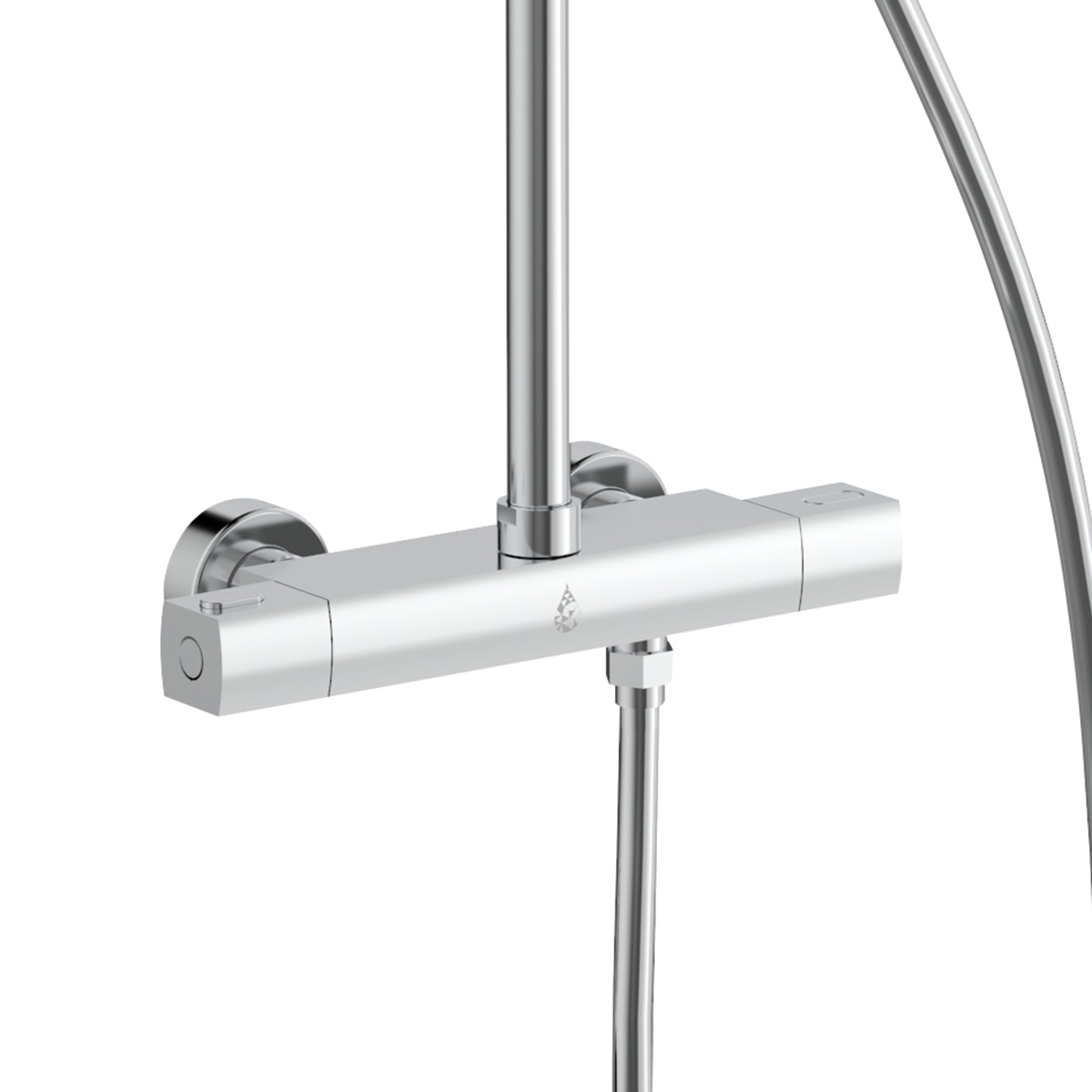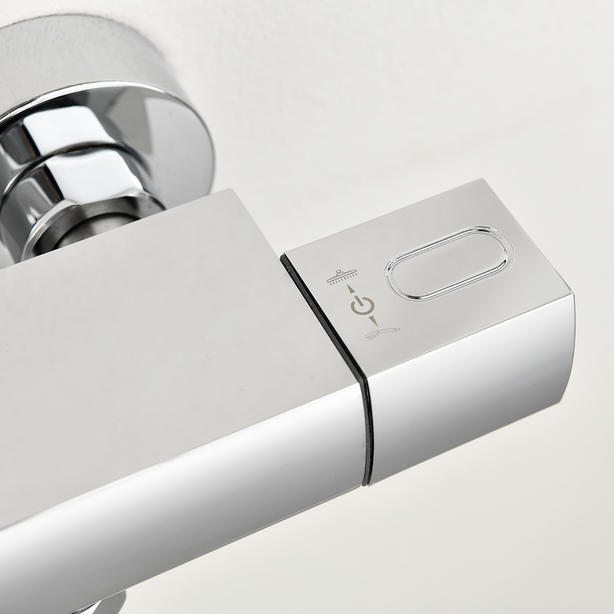 Takduschset Kaskad från Bathlife är ett komplett takduschset i modern och stram design som passar in i de flesta badrum. Detta takduschset har en termostatblandare med ett säkerhetsstopp på 38 grader. Blandaren till takduschsetet kan installeras antingen som 150 cc eller 160 cc med medföljande excenter som ingår. Teknisk data - Varmvatten: min 50 grader-max 90 grader - Kallvatten: min 4 grader-max 25 grader - Arbetstryck: 50-1000 kpa - Rekommenderat tryck: 100-600 kpa