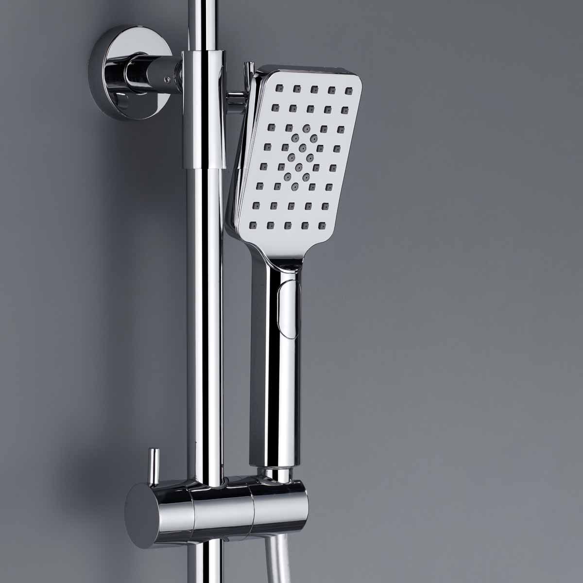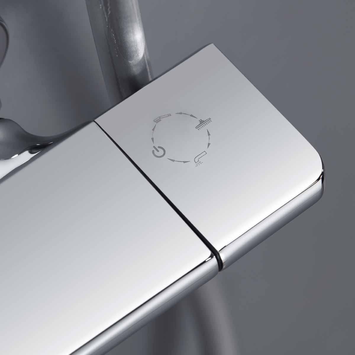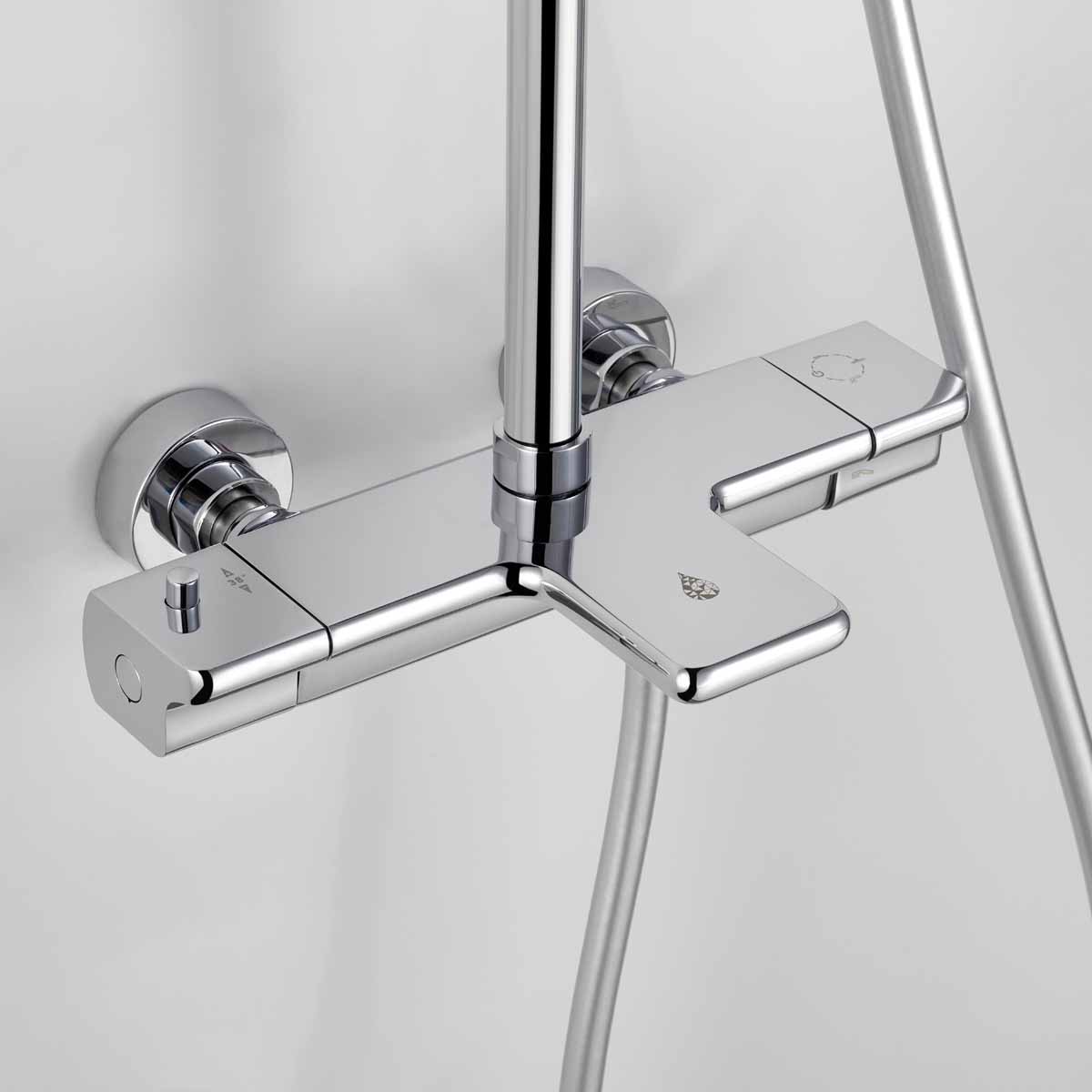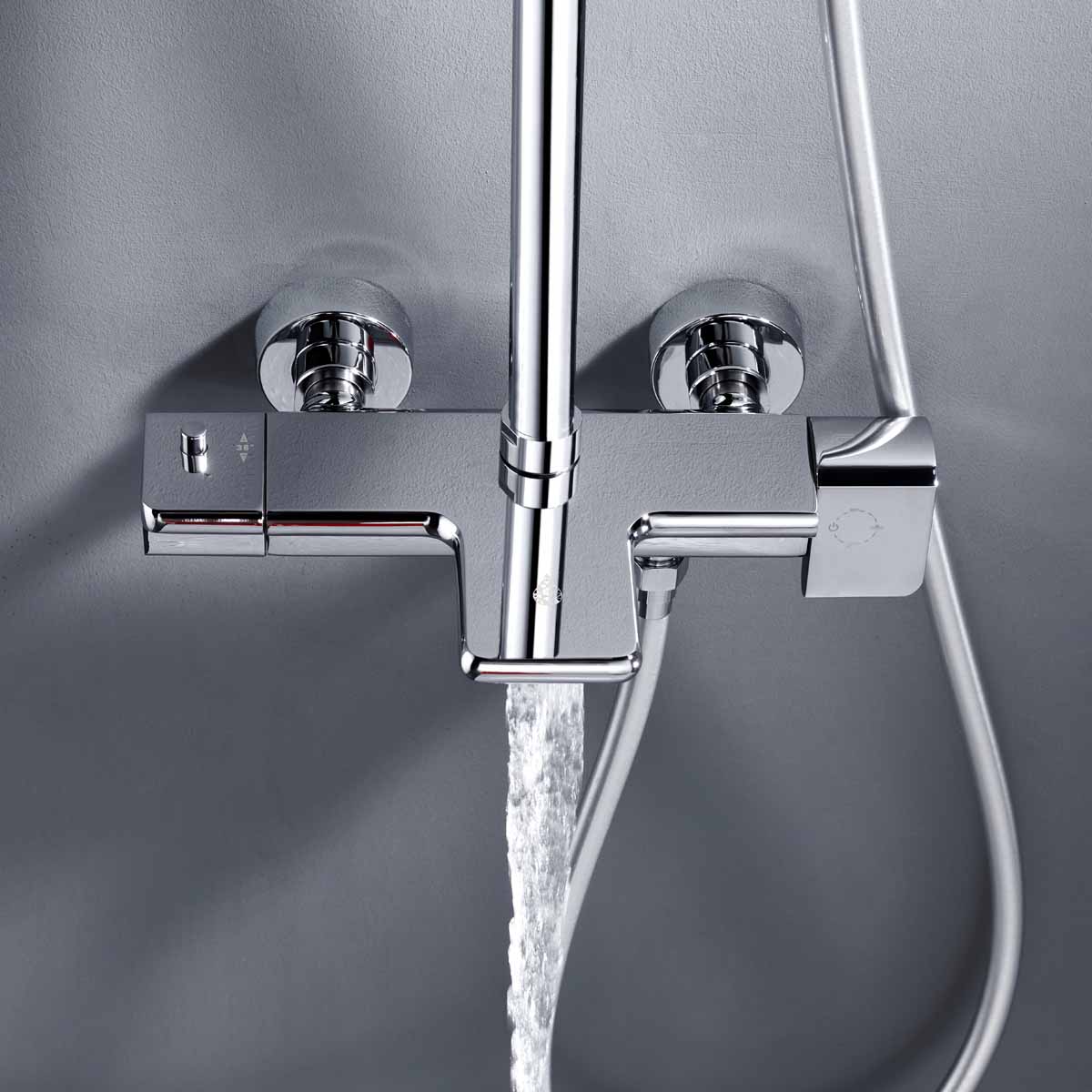 Takduschset Bathlife Stimma tapp är en takdusch med badkarsblandare. Stimma tapp är ett komplett takduschsetpaket i klassisk och stilren design som passar in i de flesta badrum. Stimma tapp är ett takduschset med en termostatblandare med ett säkerhetsstopp på 38 grader. Välj mellan krom, mattsvart/krom och mässing för ett personligare badrum. Blandaren till takduschsetet kan installeras antingen som 150 cc eller 160 cc med medföljande excenter som ingår.